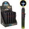 Grotere, transparante brander met laser vlam. Verkrijgbaar in de kleuren blauw, rood, groen en zwart, gesorteerd in een display van 12 stuks.