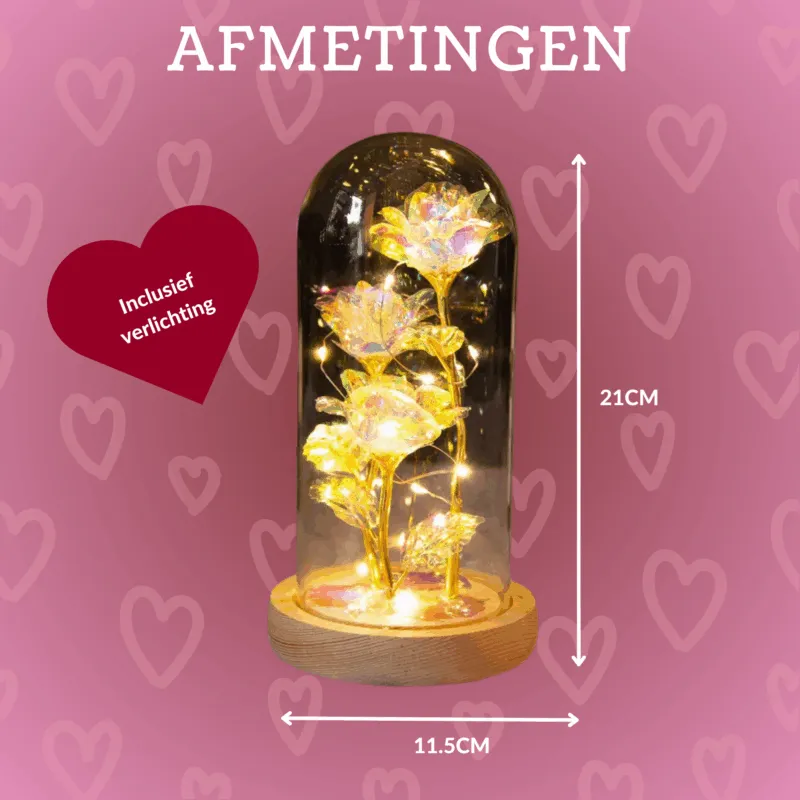 Eeuwige Roos cadeau met LED stolp voor romantische momenten. Rozen glas stolp led met magische verlichting. Romantisch cadeau led perfect voor speciale gelegenheden.