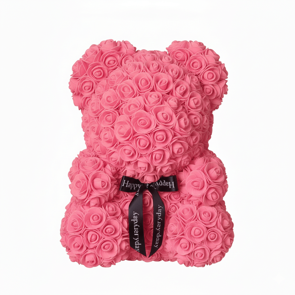 Gemaakt van hoogwaardige kunstrozen, behoudt deze teddybeer zijn schoonheid lang zonder onderhoud. Geleverd in een transparante geschenkdoos, klaar om te geven.