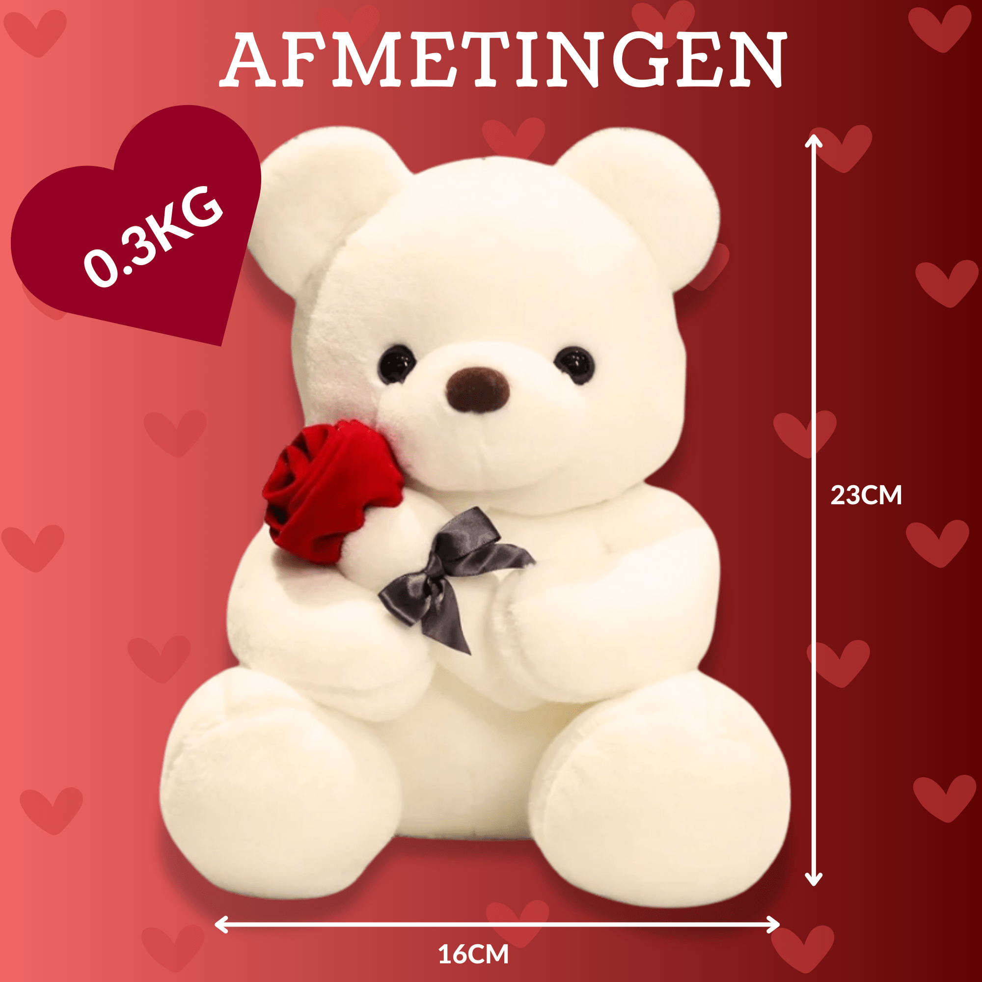 - Romantisch Ontwerp – De teddybeer houdt een rode roos vast, wat hem een speciaal en liefdevol tintje geeft.