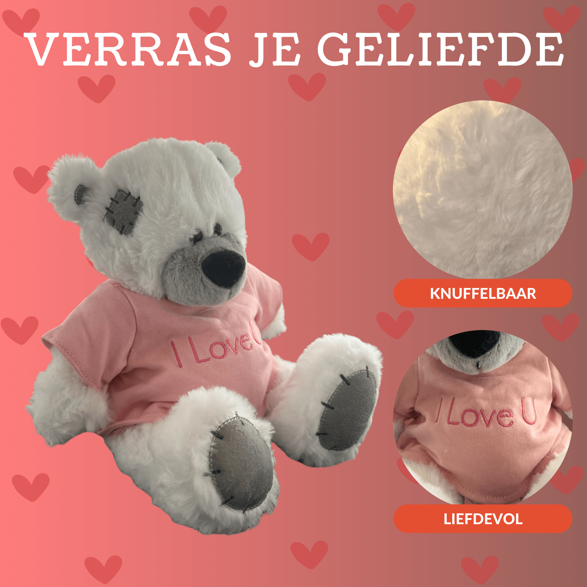 | Knuffels 25 CM | Dikke Knuffel, I Love u, Just for You, Veel Liefs, Xie je graag |